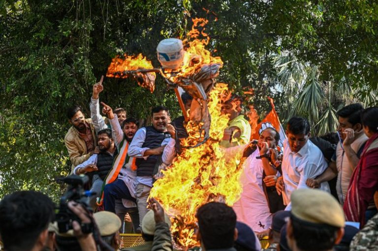 Elsewhere in New Delhi, members of the youth wing of India’s main opposition party burned an effigy of Trump.